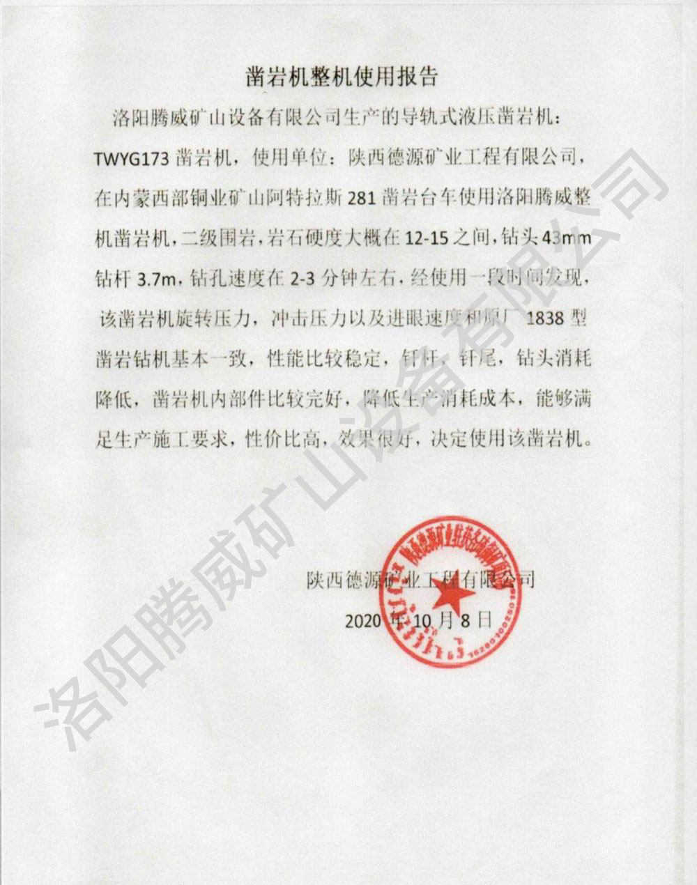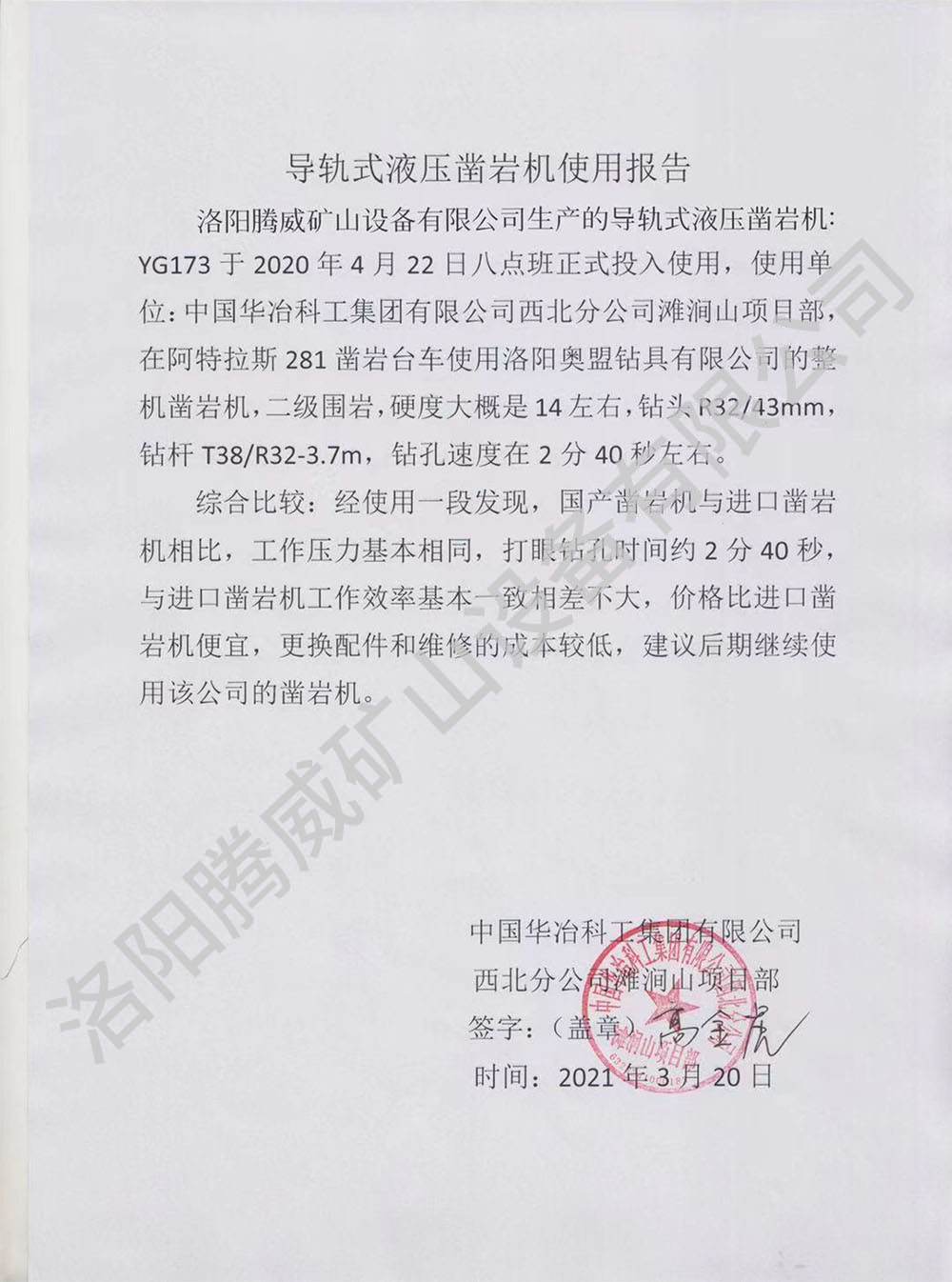 TWYG173導(dǎo)軌式液壓鑿巖機(jī)技術(shù)參數(shù)
